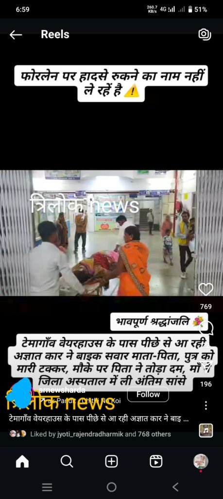 टिमरनी। के टेमगांव में नेशनल हाईवे पे एक बाइक सवार दंपत्ति को कार ने पीछे से टक्कर मार दी टक्कर इतनी तेज थी कि पति की मौके पर मौत हो गई और पत्नी ने कुछ देर बाद हॉस्पिटल में दम तोड़ दिया
