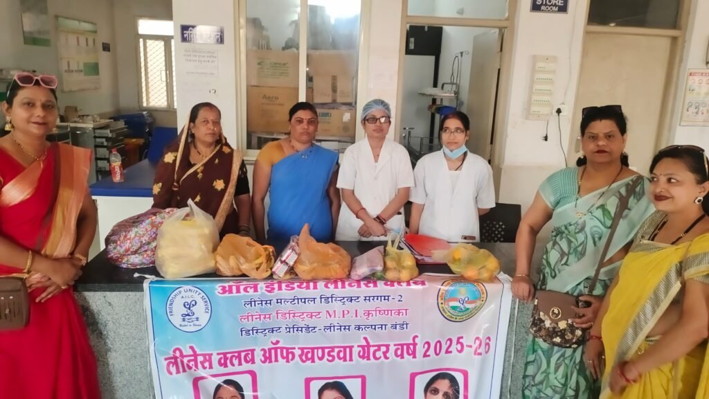 खण्डवा- लीनेस क्लब की मासिक सेवा गतिविधियों के तहत खंडवा जिला चिकित्सालय सह मेडिकल कॉलेज के प्रसूति वार्ड में ईलाज करा रही महिलाओं को मौसमी फलों का वितरण किया और महिलाओं को स्वास्थ्य के प्रति जागरूक किया लीनेश क्लब की खण्डवा ग्रेटर की अध्यक्ष रीना गुप्ता ने बताया कि खंडवा शहर की फुटपाथ पर स्थित हथकरघा उद्योगी महिलाओं का सम्मान किया गया उन्हें साड़ियां वितरित की गई। इस कार्यक्रम में अध्यक्ष रीना गुप्ता, सचिव अंजली रेवतानी , कोषाध्यक्ष पूजा अग्रवाल, शुभा शर्मा, नेहा कश्यप उपस्थित रही ।एरिया ऑफिसर लीनेस अनीता पिल्लै ने उत्कृष्ठ कार्य की सराहना की।