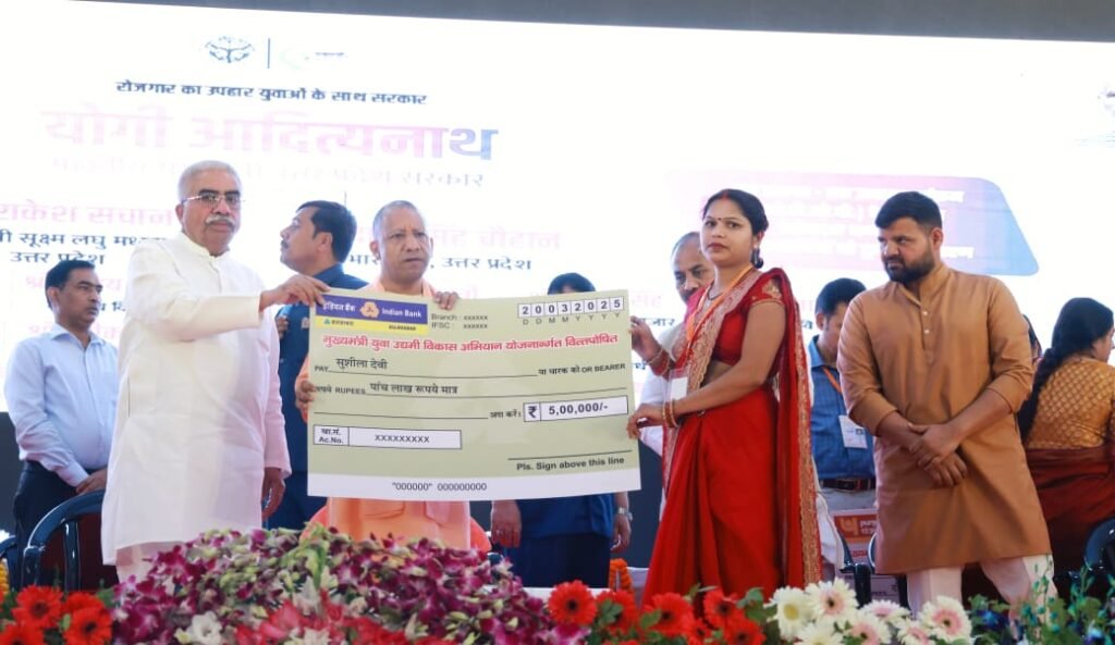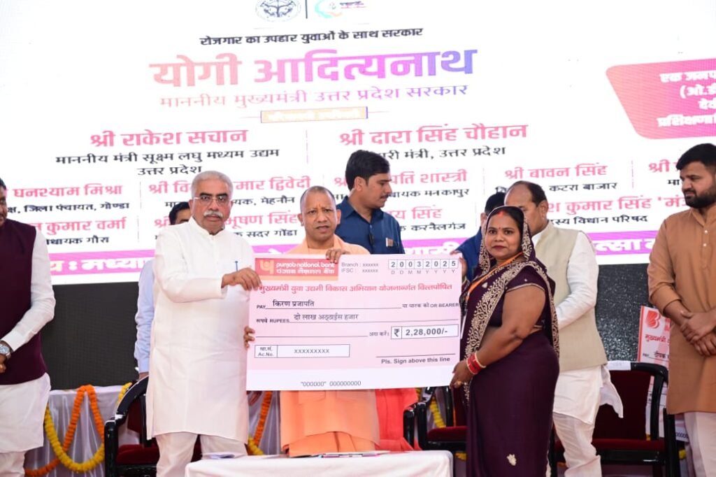बहराइच। स्वशासी चिकित्सा महाविद्यालय गोंडा परिसर में मुख्यमंत्री युवा उद्यमी विकास अभियान योजनान्तर्गत आयोजित मंडल स्तरीय वृहद ऋण वितरण कैंप का मा. मुख्यमंत्री उत्तर प्रदेश योगी आदित्यनाथ जी ने मा. मंत्री सूक्ष्म लघु एवं मध्यम उद्यम तथा निर्यात प्रोत्साहन विभाग श्री राकेश सचान व अन्य जनप्रतिनिधियों के फीता काटकर शुभारम्भ किया। मण्डल स्तरीय वृहद ऋण वितरण शिविर के दौरान मा. मुख्यमंत्री ने देवीपाटन मण्डल के लगभग 2127 लाभार्थियों को रू 8201.00 लाख के ऋण स्वीकृत पत्र एवं 1333 लाभार्थियों को रू. 5191.00 लाख के ऋण का वितरण किया गया।