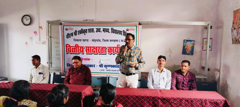 मंडला। लोक शिक्षण संचालनालय भोपाल के आदेशानुसार पी एम श्री एकीकृत शासकीय उच्चतर माध्यमिक विद्यालय सिंगारपुर में प्रभारी प्राचार्य श्री जय बैरागी के मार्गदर्शन एवं श्री के के अवस्थी वित्तीय सलाहकार सेंट्रल बैंक ऑफ इंडिया के मुख्य अतिथि में वित्तीय साक्षरता कार्यशाला का आयोजन किया गया । विद्यालय में अध्ययनरत छात्र छात्राओं केविद्यालय के प्रभारी प्राचार्य की गरिमामयी अध्यक्षता में वित्तीय साक्षरता कार्यशाला का आयोजन किया गया ।