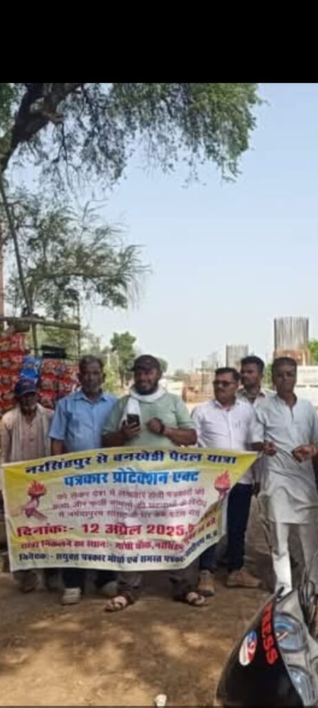 नरसिंहपुर जिले के पत्रकारों पर हो रहे हमले तथा फर्जी मुकदमे पत्रकार प्रोडक्शन एक्ट के लिएतथा पहले भी नरसिंहपुर में पत्रकारों ने मध्यप्रदेश संयुक्त पत्रकार मोर्चा द्वारा आंदोलन किया था जिसमें नर्मदा पुरम सांसद श्री दर्शन सिंह चौधरी ने आश्वासन दिया था पत्रकारों को कि आपके लिए कानून बनवाया जाएगा परंतु अभी तककोई भी मांग पूरी नहीं हुई है इसको याद दिलाने के लिए नरसिंहपुर के समस्त पत्रकार बंधु 12 अप्रैल 2025 नरसिंहपुर से श्री सांसद निवास बनखेड़ी तक पैदल मार्च कर रहे हैं। जिसमें नरसिंहपुर जिले की तमाम जनता का भारी समर्थन मिल रहा है।