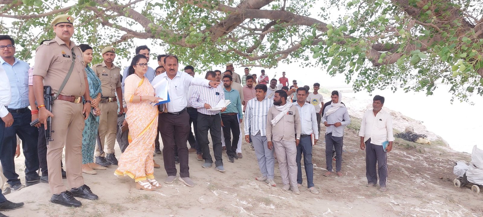 जिलाधिकारी ने घाघरा घाट पर बनवाये जा रहे स्पर का भी निरीक्षण करते हुए समयान्तर्गत कार्य पूर्ण कराने के निर्देश दिये।