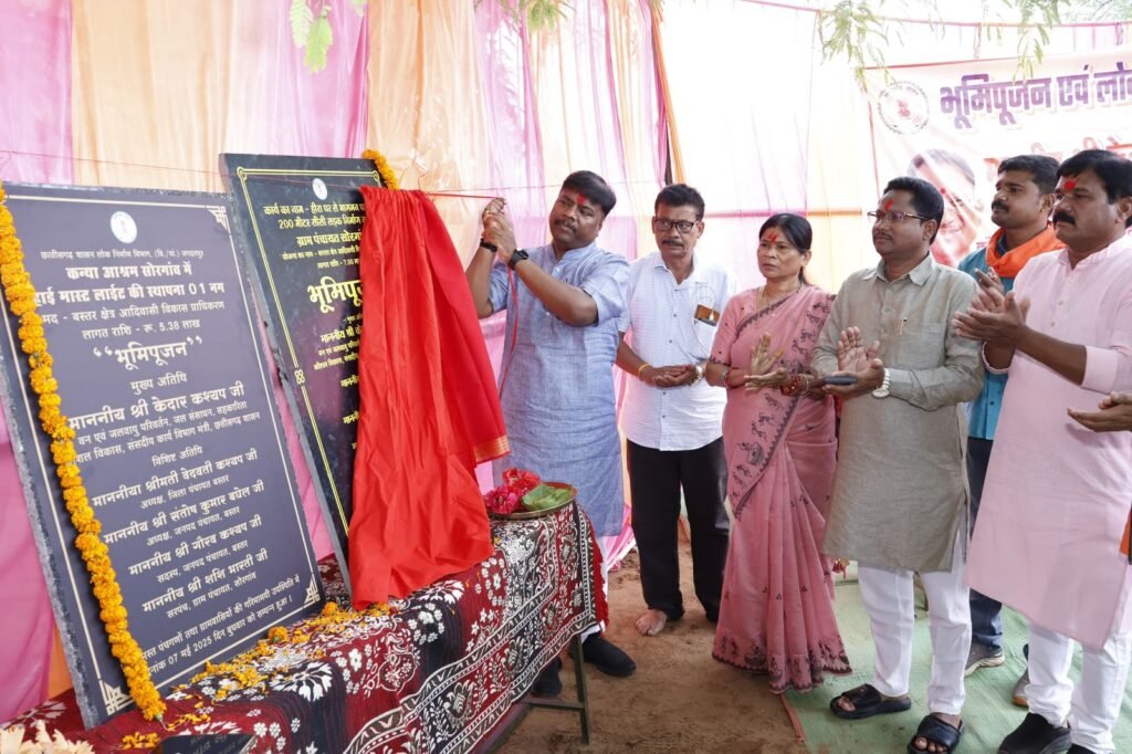 वनमंत्री केदार कश्यप ने नारायणपुर विधानसभा क्षेत्र के भाजपा मंडल भानपुरी के ग्राम सोरगांव, तूरपुरा एवं केशरपाल में विभिन्न विकासकार्यों का भूमिपूजन व लोकार्पण कर क्षेत्रवासियों को सौगात समर्पित किया। उन्होंने इस दौरान कहा कि विष्णुदेव साय सरकार में आज बस्तर तेज गति से विकास कर रहा है। बस्तर और नारायणपुर विधानसभा क्षेत्र के हर प्रवास में क्षेत्रवासियों को भाजपा सरकार के द्वारा लाखों करोड़ों की सौगात देने का क्रम जारी है। केदार कश्यप ने कहा हमारी साय सरकार ने बस्तर वासियों से जो वाद किया उसे पूरा करने का प्रयास कर रही है।
