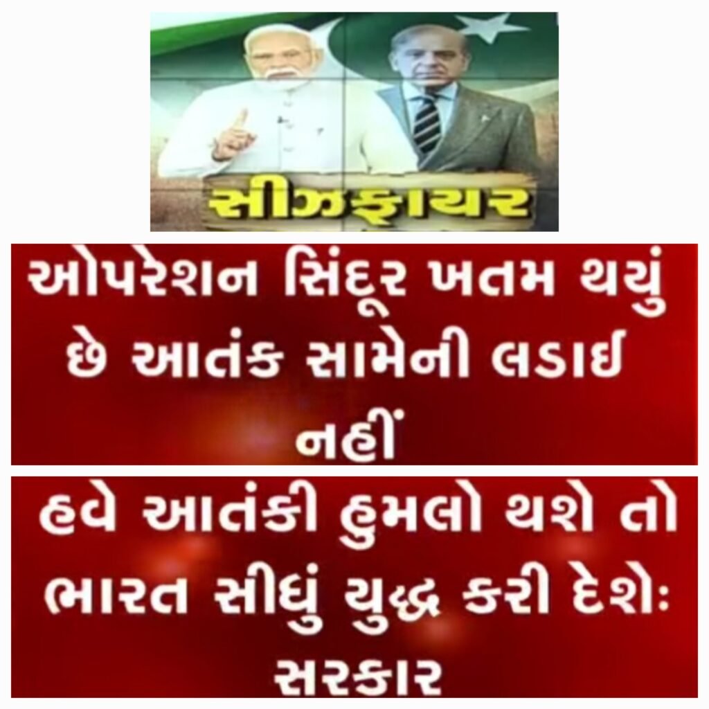 ભારત અને પાકિસ્તાન વચ્ચે યુદ્ધ વિરામની સીઝ ફાયર એટલે કે શરતી યુદ્ધ વિરામ ની જાહેરાત