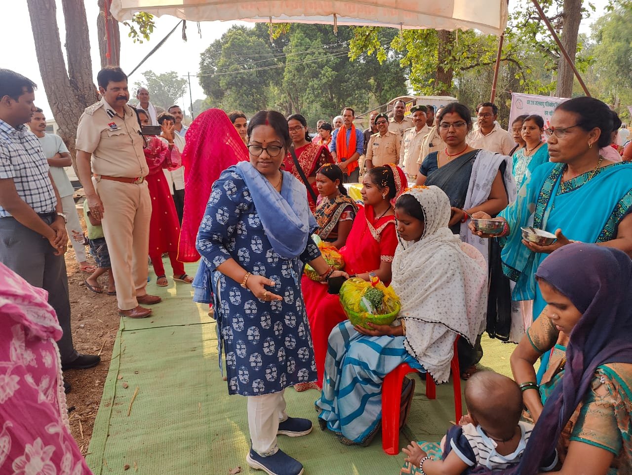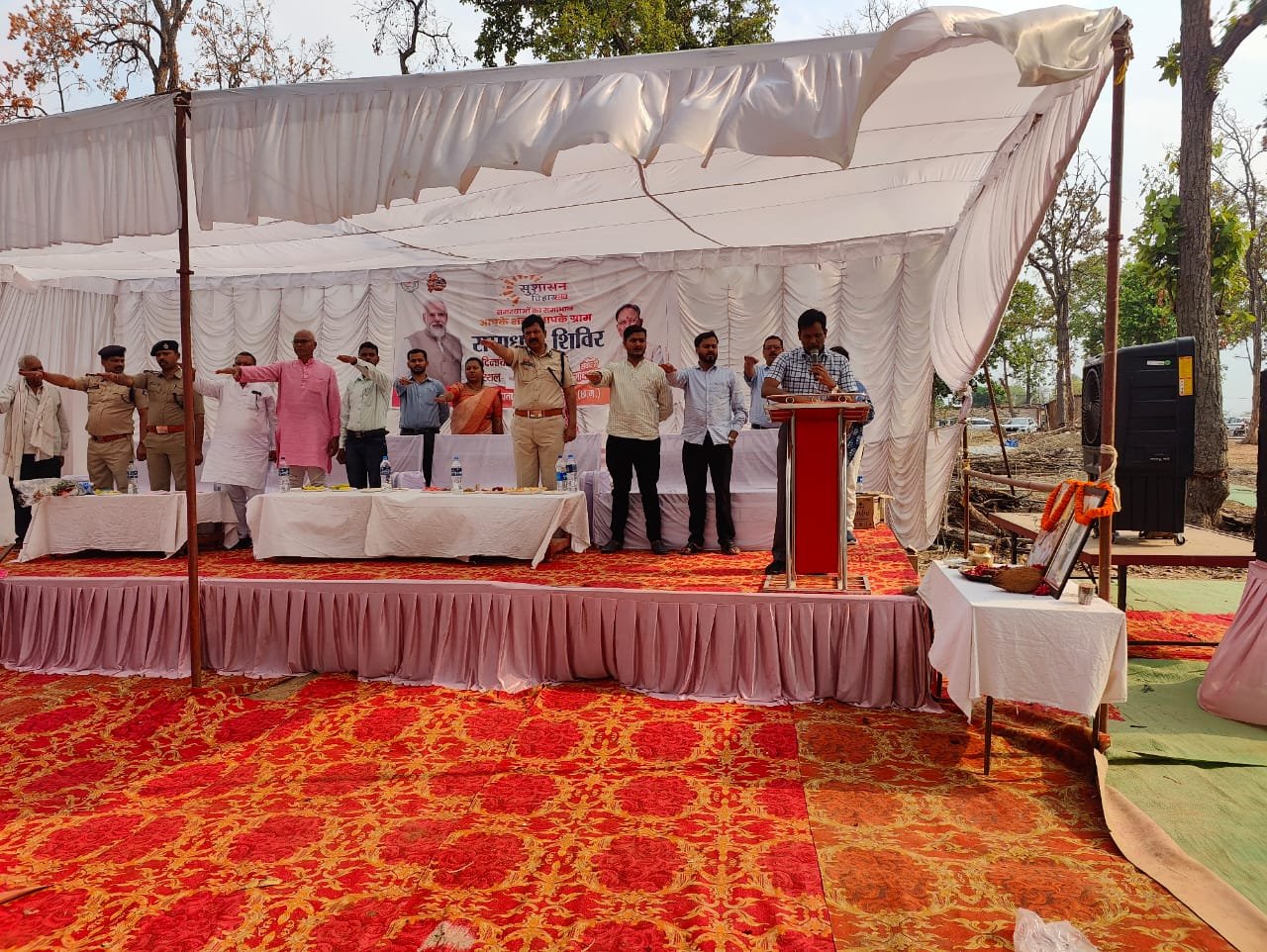 सूरजपुर 16 मई 2025 सुशासन तिहार 2025 के अंतर्गत आज ग्राम खड़गवां में समाधान शिविर का आयोजन किया गया।  इस शिविर में कलेक्टर श्री एस. जयवर्धन एवं वरिष्ठ पुलिस अधीक्षक श्री प्रशांत ठाकुर की विशेष उपस्थिति में ग्रामीणों ने भाग लेकर अपनी समस्याएं एवं शिकायतें प्रस्तुत कीं, जिनका निराकरण किया गया। इस शिविर के दौरान सामाजिक कल्याण और जनसेवा के विविध कार्यक्रम भी आयोजित किए गए। दो बच्चों का अन्नप्राशन संस्कार एवं तीन गर्भवती माताओं की गोद भराई विधिपूर्वक संपन्न कराई गई। इसके अलावा 12 पात्र हितग्राहियों को राशन कार्ड का वितरण एवं 10 लाभार्थियों को ऋण पुस्तिका प्रदान की गई।