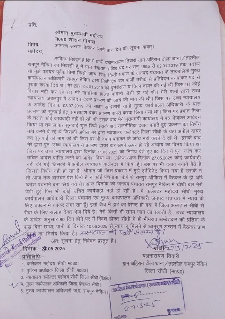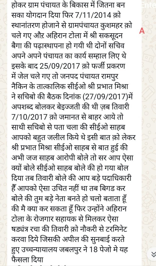 मध्य प्रदेश के सीधी जिले के जनपद पंचायत रामपुर नैकिन के अंतर्गत ग्राम पंचायत अहिरन टोला के पूर्व सचिव यज्ञ नारायण तिवारी ग्राम पंचायत अहिरान टोला मे नियुक्त