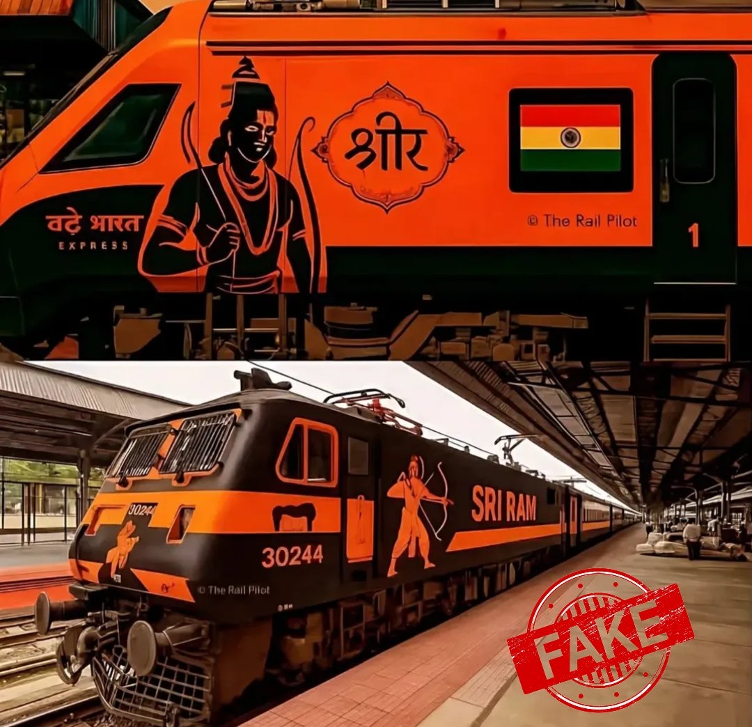 सोशल मीडिया पर एक तस्वीर शेयर हो रही है, जिसमें एक ट्रेन भगवा रंग में रंगी हुई दिखाई दे रही है। ट्रेन के इंजन पर भगवान श्रीराम की तस्वीर और “जय श्रीराम” लिखा हुआ नजर आ रहा है। जिसे यूजर्स भ्रामक दावे के साथ शेयर कर रहे हैं।दावा किया जा रहा हैं कि यह वंदे भारत ट्रेन है। सूत्रों से पता चला है की फोटो की जांच में वायरल दावा फर्जी साबित हुआ। पड़ताल में सामने आया कि वायरल तस्वीर एआई जनरेटेड है, जिसे यूजर्स भ्रामक दावे के साथ शेयर कर रहे हैं। सोशल मीडिया प्लेटफॉर्म पर एक यूजर ने वायरल तस्वीर को शेयर करते हुए 29 मई को दावा किया, “वंदे भारत ट्रेन पर लिखा गया जय श्री राम” वहीं, एक अन्य यूजर ने 29 मई को ही समान दावे के साथ वायरल तस्वीर को शेयर किया। वायरल दावे की सच्चाई जानने के लिए तस्वीर को ध्यान से देखा गया। जांच में तस्वीर पर The real Pilot लिखा नजर आया। इसे आधार बनाकर जब सर्च किया तो”the_rail_pilot” नाम का एक इंस्टाग्राम अकाउंट मिला। इस अकाउंट पर वही वायरल तस्वीर 26 मई 2025 को पोस्ट की गई थी। खास बात यह है कि पोस्ट के कैप्शन में स्पष्ट तौर पर बताया गया है कि यह तस्वीर AI जनरेटेड है। जांच को आगे बढ़ाते हुए”the_rail_pilot” नाम के इंस्टाग्राम पेज को ध्यान से देखा। वहां न सिर्फ वायरल तस्वीर मिली, बल्कि और भी कई एआई से बनी ट्रेन की तस्वीरें दिखीं। इनमें विराट कोहली, धोनी, रजनीकांत और डॉ. एपीजे अब्दुल कलाम की फोटो लगी ट्रेनें शामिल थीं। इससे साफ हो गया कि वायरल तस्वीर भी एआई से बनाई गई है, जिसे लोग असली समझकर गलत दावे के साथ शेयर कर रहे हैं। इंस्टाग्राम पेज से मिले क्लू के आधार पर वायरल तस्वीर की सच्चाई जानने के लिए टूल की मदद ली। रिपोर्ट के अनुसार, यह तस्वीर 67% तक AI- निर्मित है।वहीं, वायरल तस्वीर का सच जानने के लिए एक अन्य एआई डिटेक्टर टूल की सहायता ली, उस टूल के अनुसार भी वायरल तस्वीर AI निर्मित है। पड़ताल में सामने आया कि वायरल तस्वीर एआई जनरेटेड है, जिसे यूजर्स भ्रामक दावे के साथ शेयर कर रहे हैं।