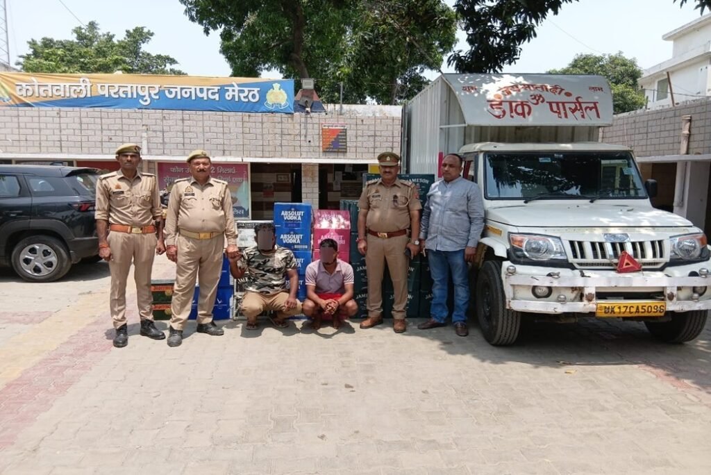 थाना परतापुर पुलिस द्वारा अवैध हरियाणा मार्का के भिन्न-भिन्न ब्रांड की 62 पेटियां शराब, गोवा मार्का के 1080 फर्जी स्टीकर/चिट व एक बुलैरो पिकअप गाडी सहित 02 गिरफ्तार।
