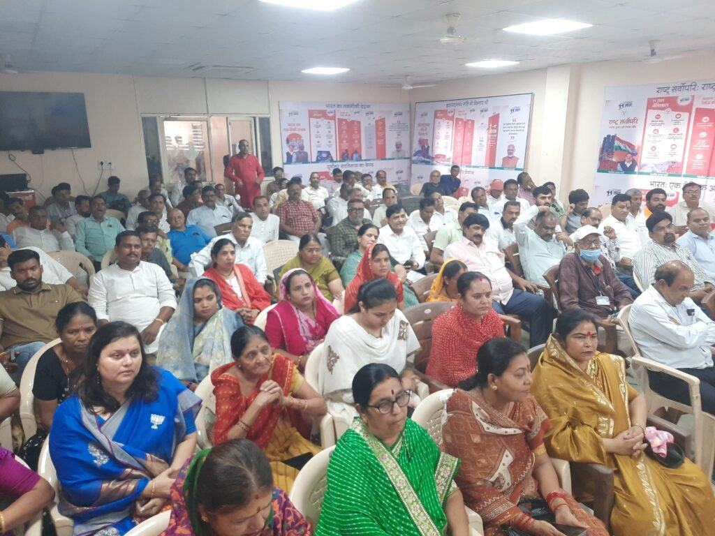 प्रवक्ता सुनील जैन ने बताया कि पार्टी के जिला अध्यक्ष राजपाल सिंह तोमर ने स्वागत भाषण देते हुए प्रधानमंत्री के 11 वर्षों में किए गए कार्यों की सराहना करते हुए उन्हें धन्यवाद दिया। प्रोफेशनल मीट को सांसद ज्ञानेश्वर पाटिल महापौर अमृता अमर यादव विधायक कंचन मुकेश तन्वे, नारायण पटेल, छाया मोरै ने भी संबोधित करते हुए कहा कि प्रधानमंत्री श्री नरेंद्र मोदी जी ने अपने 11 वर्षों के कार्यकाल में अनेक साहसिक निर्णय लिए। 2014 के पहले की सरकारें भ्रष्टाचार में आकंठ डूबी थी और देश की जनता में नकारात्मकता, निराशा और अविश्वास का माहौल था। प्रधानमंत्री मोदी जी के आने के बाद राजनीतिक व्यवस्था में सकारात्मकता, पारदर्शिता और परिणाम का समावेश हुआ। देश आशावाद से भर गया, लोगों में भरोसा जगा कि “मोदी है, तो मुमकिन है। ”यह केवल नारा नहीं, बल्कि जनमानस की धारणा बन गई है। राज्यसभा में बहुमत न होते हुए भी पूरे देश में जीएसटी लागू किया। शाहबानो केस में सुप्रीम कोर्ट के फैसले के बावजूद कांग्रेस की राजीव गांधी सरकार ने कदम पीछे खींच लिए थे, लेकिन प्रधानमंत्री श्री नरेन्द्र मोदी जी ने तीन तलाक विरोधी कानून बनाकर मुस्लिम बहनों को परेशानियों से मुक्ति दिलाई। न्यायालय की महत्ता को स्थापित करते हुए उन्होंने सदियों पुराने राम मंदिर विवाद का पटाक्षेप किया और अयोध्या में राम मंदिर के भूमिपूजन से लेकर उसका लोकार्पण भी किया। प्रवक्ता सुनील जैन ने बताया कि मीट में मुख्य वक्ता- पंकज जोशी प्रदेश उपाध्यक्ष दूसरे वक्ता- त्रिलोक पटेल तीसरे वक्ता- राजेश तिवारी के साथ ही राजेश डोंगरे, सुभाष कोठारी, हरीश कोटवाले, सेवादास पटेल, अरुण सिंह, मुकेश तनवे, अमर यादव, दिनेश पालीवाल, देवेंद्र वर्मा अशीष चटकेले, सुनील जैन, नंदन करोड़ी, यशदीप चोरे, नारायण बाहेती, उत्तमचंद राठौड़, राजीव शर्मा, पुरषोत्तम पटेल, सतीश कोटवाले, आर सी सोनी, मंगलेश तोमर, भरत पटेल, श्रृंगी उपाध्याय के साथ पार्टी के कार्यकर्ता एवं गणमान्य नागरिक उपस्थित थे। कार्यक्रम का संचालन अशीष चटकेले ने