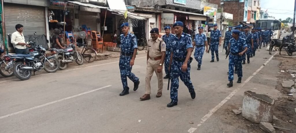 रैपिड एक्सन फोर्स के जवानों द्वारा थाना पथरिया का क्षेत्रीय परिचय अभ्यास किया