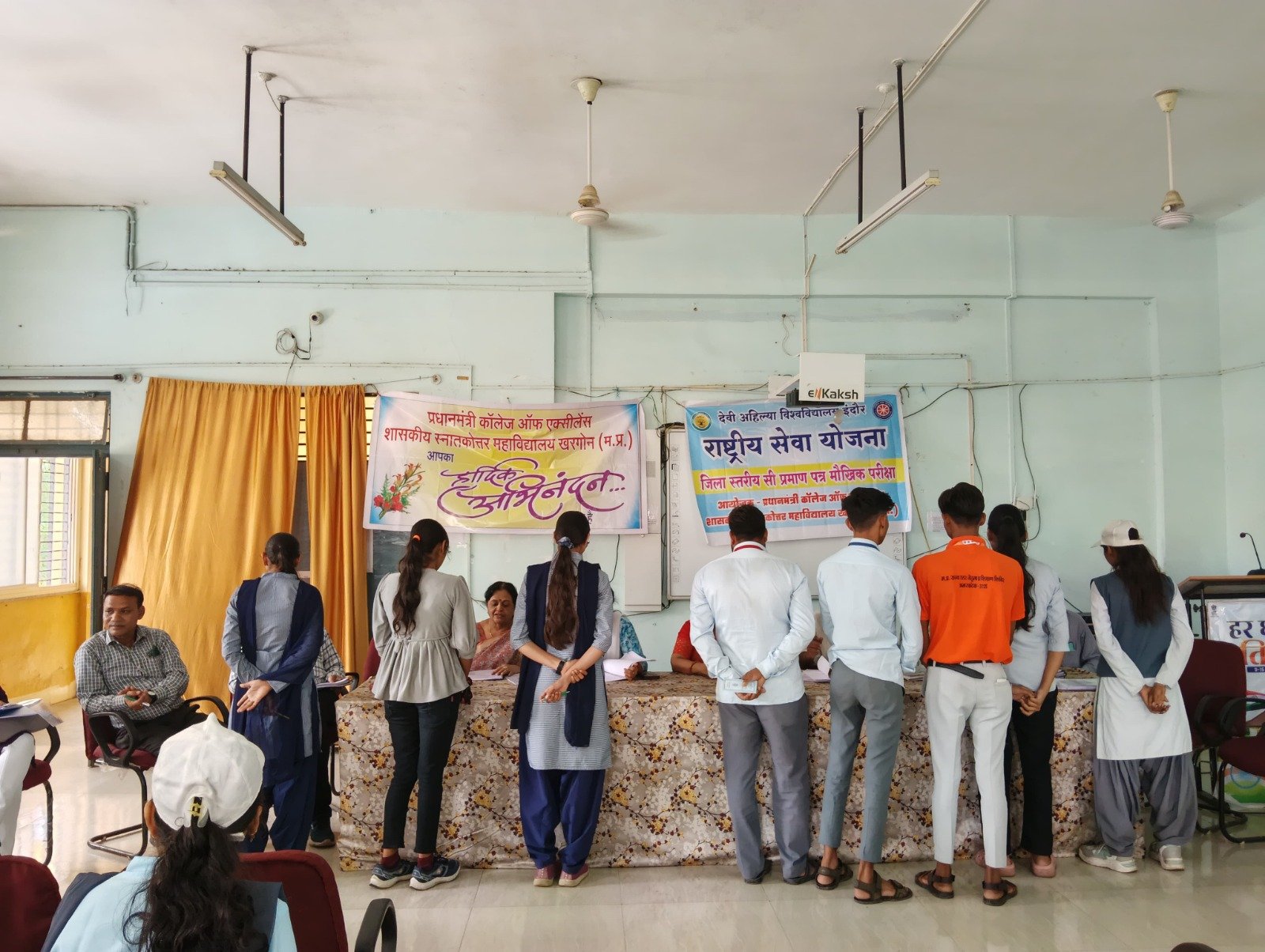 स्नातकोत्तर महाविद्यालय खरगोन में प्राचार्य डॉ. जी.एस. चौहान के मार्गदर्शन में राष्ट्रीय सेवा योजना (एनएसएस) की जिला स्तरीय सी प्रमाण पत्र की मौखिक परीक्षा का आयोजन किया गया। इस परीक्षा में जिले के विभिन्न महाविद्यालयों से 24 स्वयंसेवकों ने भाग लिया। परीक्षा के दौरान स्वयंसेवकों ने स्वच्छ भारत अभियान, पर्यावरण संरक्षण, बेटी बचाओ-बेटी पढ़ाओ, रक्तदान जैसे महत्वपूर्ण सामाजिक विषयों पर अपनी प्रोजेक्ट फाइलें प्रस्तुत कीं और साक्षात्कार समिति के समक्ष प्रश्नों के उत्तर बेझिझक व आत्मविश्वास के साथ दिए।
