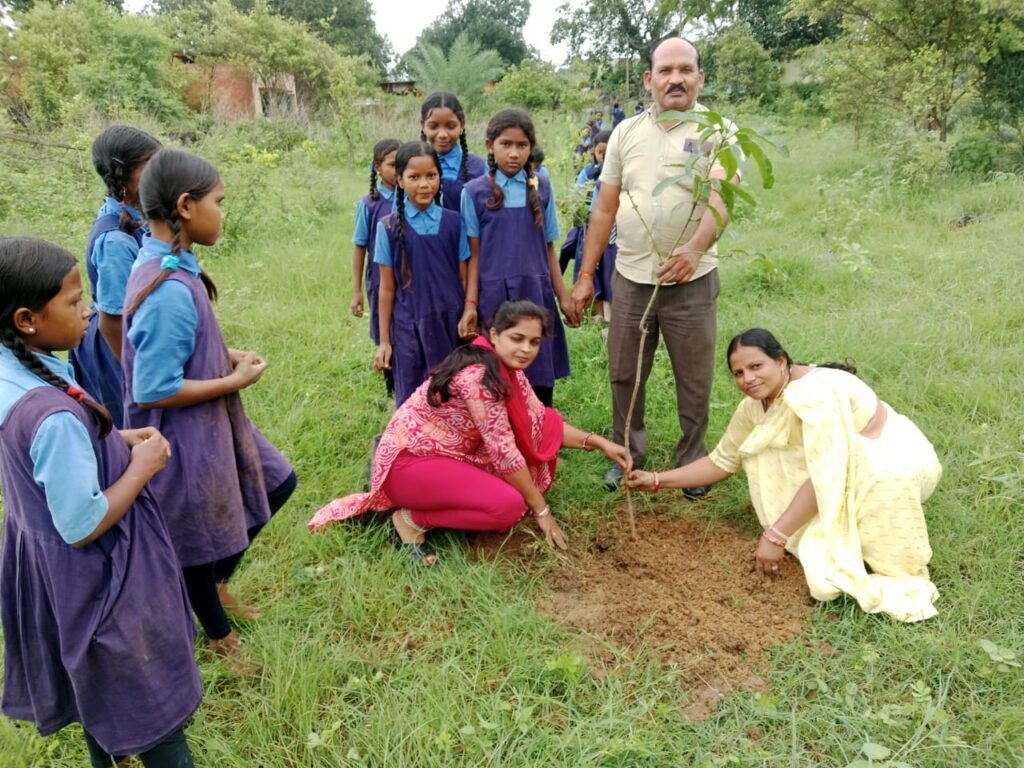 सरपंच दुलेश्वरी दीवान द्वारा ठाकुरदिया कला के शाला परिसर में पौधा रोपण संपन्न