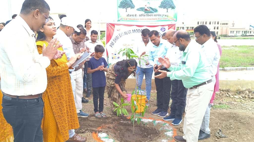एक पेड़ मॉ के नाम अभियान के तहत एकलव्य विद्यालय व मेनगांव थाना परिसर में किया पौधारोपण