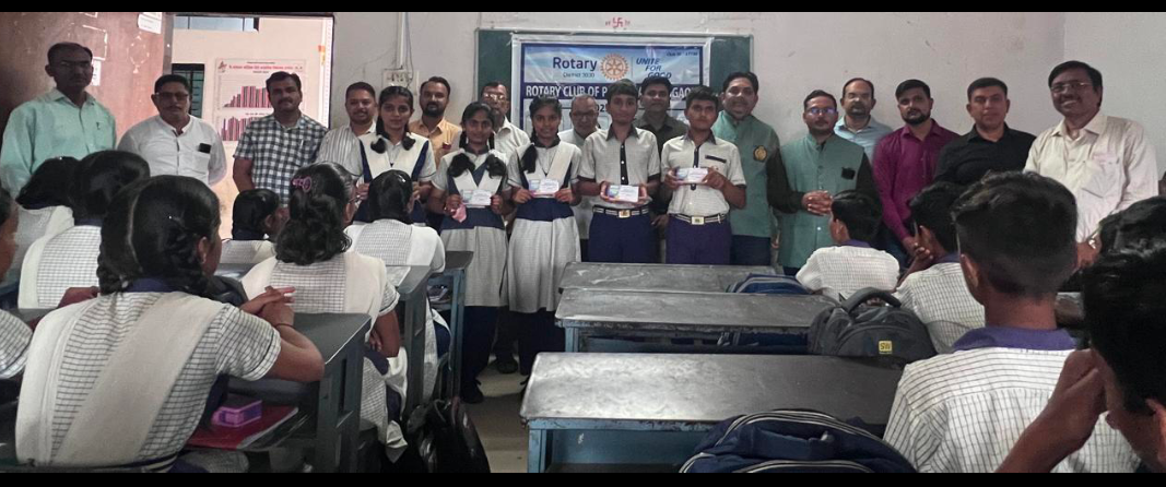 दिनांक : ८ जुलै रोजी रोटरी क्लब पाचोरा भडगाव कडून कै पी के शिंदे माध्यमिक विद्यालय पाचोरा आणि उच्च माध्यमिक विद्यालय कोंडवाडा गल्ली पाचोरा येथे इयत्ता दहावी च्या विद्यार्थ्यांना आयडियल स्टडी ऍप चे वितरण करण्यात आले. अत्यंत सुबक आणि सोप्या भाषेत दहावीचे पाठ्यपुस्तक, प्रश्न उत्तरे, बहुपर्यायी प्रश्न, पाठ्यपुस्तकावर आधारित व्हिडीओ, नोट्स, प्रश्नसंच, कृती आराखडा आणि दहावी नंतर करिअर मार्गदर्शन इतक्या गोष्टी या ऍप मध्ये आहेत. रोटरी पाचोरा भडगाव चे अध्यक्ष डॉ मुकेश तेली यांनी अध्यक्षीय भाषणात बोलताना सांगितले की पाचोरा भडगाव दोन्ही तालुके मिळून 5000 ऍप वितरण करण्याचा मानस आहे. दोन्ही शाळेमध्ये इंटरॅक्ट क्लब स्थापन केला. त्या अंतर्गत हा प्रोजेक्ट घेण्यात आला. रोटरी क्लब पाचोरा भडगाव चे अध्यक्ष डॉ मुकेश तेली, सचिव डॉ अजयसिंग परदेशी, शाळेचे डायरेक्टर अमोलभाऊ शिंदे, नीरज मुनोत, प्रोजेक्ट डायरेक्टर श्री संजय कोतकर, चंद्रकांत लोढाया, भरत सिनकर, डॉ बाळकृष्ण पाटील, डॉ अमोल जाधव, डॉ गोरख महाजन, डॉ प्रशांत सांगडे, डॉ कुणाल पाटील, डॉ राहुल काटकर, डॉ तौसिफ खाटीक, डॉ सिद्धांत तेली, मुख्याध्यापक, शिक्षक शिक्षिका विद्यार्थी विद्यार्थिनी उपस्थित होते.