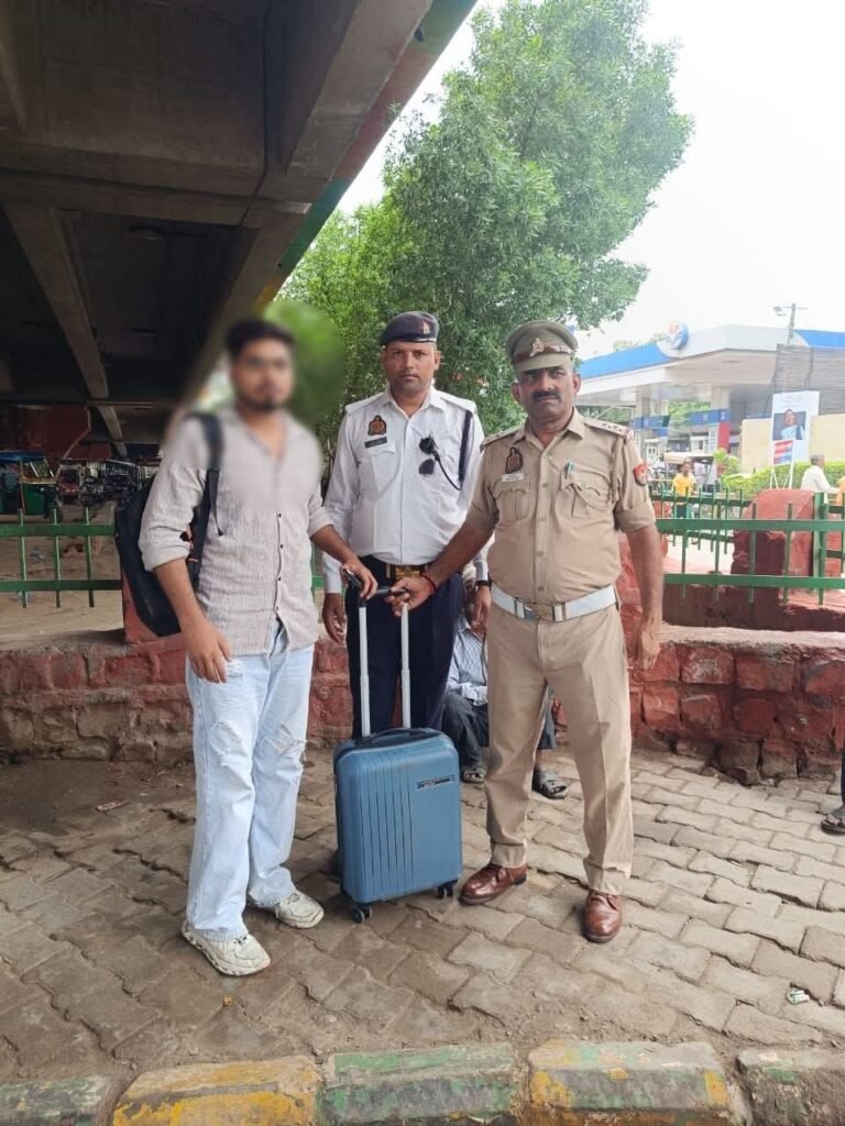 आज दिनाँक 10/07/2025 को पुराना बस अड्डा पर एक ई रिक्शा में किसी अज्ञात व्यक्ति का एक ट्रॉली बैग छूट गया था चालक से उक्त बैग प्राप्त कर यातायात पुलिस गाजियाबाद द्वारा