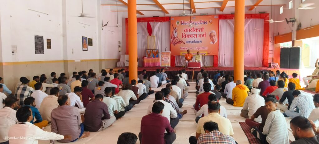 खण्डवा,, विश्व हिंदू परिषद खंडवा विभाग का कार्यकर्ता विकास वर्ग खंडवा गंगराड़े धर्मशाला में संपन्न हुआ। जिसमें प्रथम दिवस उद्घाटन सत्र में क्षेत्रीय संगठन मंत्री श्री जितेंद्र जी पवार द्वारा विश्व हिंदू परिषद स्थापना और उद्देश्य, उपलब्धि विषय में बोद्धिक के माध्यम से बताया गया हिंदुओं की मान बिंदुओं की रक्षा, मठ मंदिरों की रक्षा गौ माता की रक्षा, को लेकर विश्व हिंदू परिषद की स्थापना श्री कृष्ण जन्माष्टमी के दिन 1964 में की गई। कार्यकर्ता विकाश वर्ग के द्वितीय दिवस के संवाद सत्र में प्रांत मंत्री श्री विनोद जी शर्मा द्वारा कार्यकर्ताओं को बैठक का महत्व एवं बैठक संचालन का महत्व बताया। समापन सत्र में प्रांत संगठन मंत्री श्री खगेंद्र जी भार्गव द्वारा आदर्श कार्यकर्ता और उनके गुण पर कार्यकर्ताओं का बोद्धिक सत्र में मार्गदर्शन कर संगठन की रीति नीति व संगठन के विस्तृत जानकारी दी गई।। कार्यकर्ता विकास वर्ग में संगठन की दृष्टि से तीन जिलों ( खंडवा, ओंकारेश्वर, एवं ब्रह्मपुर) जिला, प्रखंड ,खंड, से 180 कार्यकर्ताओं द्वारा वर्ग में उपस्थित रहे। जिसमें मातृशक्ति दुर्गा वाहिनी भी सम्मिलित रही, वर्ग में मुख्य शिक्षक निलेश जी महाजन,, बौद्धिक प्रमुख अजय चन्द्रे , पर्यवेक्षक संतोष जी पंडित, वर्ग में मुख्य रूप से विकास जी सातले, राजेंद्र जी पाल, आदित्य जी मेहता, विनीत जी सोनी, गोटू जी वर्मा,दीपक जी सोनी ऋतुराज पाठक,,अजय मालवीय,, रोहित जी चावरे अनिमेष जी,सावन जी पाटीदार, व सहयोगी कार्यकर्ताओं ने व्यवस्था