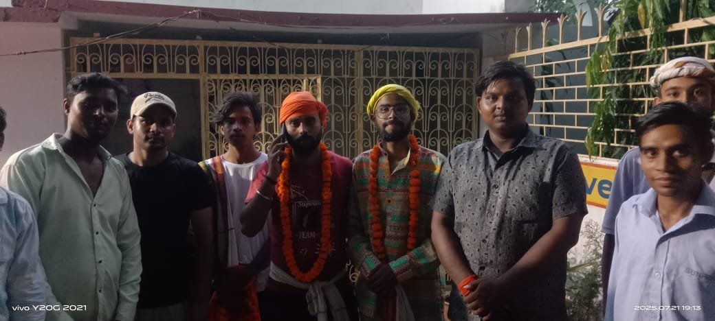 सभी श्रद्धालूओं कावड़ियों का फूल माला पहन कर वाह पुष्प वर्षा कर उनका स्वागत किया इस मौके पर विश्व हिंदू परिषद के खंड अध्यक्ष शिवम कश्यप जी खंड मंत्री दीपक जी खंड उपाध्याय आकाश अग्रवाल जी नीरू टेंट के मालिक रेहान अंसारी दीपक जी शिवाजी मुकेश जी हमारी खंड की पूरी टीम उपस्थित राही।