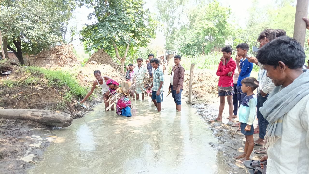 - बारिश का पानी भरने से घर से निकलने मे हो रही परेशानी निकलने का नहीं है रास्ता अधिकारी नाही ग्राम प्रधान सुन रहे ग्रामीणो की परेशानी