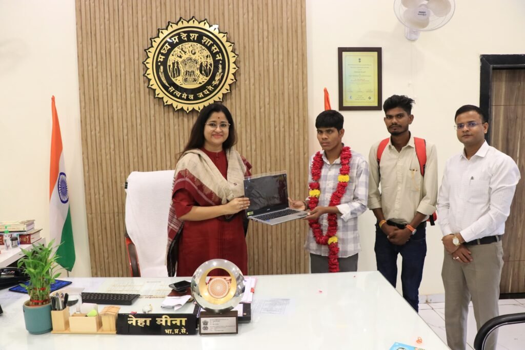 झाबुआ, 25 जुलाई 2025। कलेक्टर नेहा मीना ने जिले में मुख्यमंत्री निःशक्त शिक्षा प्रोत्साहन योजना के अंतर्गत श्री बंटी पिता मोहन डामोर निवासी छोटी धामनी पंचायत द्वारा कक्षा 9 वीं (बालक उत्कृष्ट उ. मा. विद्यालय थांदला ) में 50.20% तथा सुश्री इरम पिता फिरोज खान निवासी पेटलावद द्वारा कक्षा 12 वीं (शासकीय कन्या हायर सेकन्डरी स्कूल पेटलावद ) में 70.40% प्राप्त करने पर लेपटॉप भेंट किया गया।