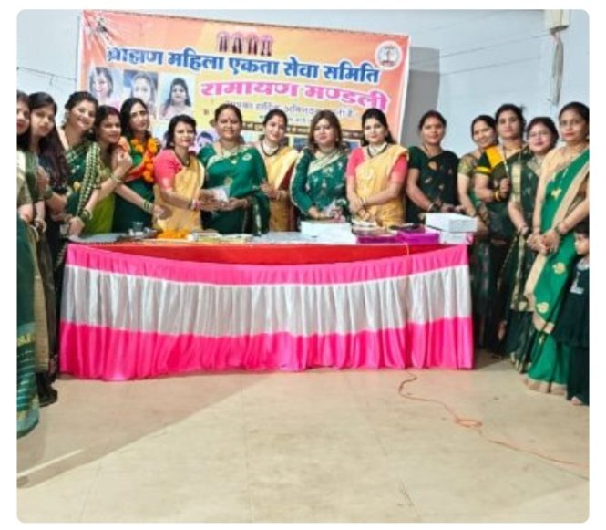 सावन सुंदरी श्रीमती भारती मुरोटिया और नृत्य प्रतियोगिता में श्रीमती पूजा खम्परिया जी प्रथम स्थान प्राप्त किया। कार्यक्रम का समापन भगवान का प्रसाद वितरण कर किया गया। इस कार्यक्रम में ब्राह्मण रामायण मंडली जालपा वार्ड की अध्यक्ष श्रीमती शिखा खम्परिया, सचिव श्रीमती माही तिवारी, कोषाध्यक्ष श्रीमती रिया खम्परिया एवं सदस्य भावना दुबे, श्वेता पाठक चंद्रकांता शर्मा, पूजा खम्परिया निहारिका शर्मा, मधु त्रिपाठी, संतोषी बडगैया, श्रद्धा पांडे, श्रुति ,सुरभि पांडे,पारुल जी,छवि , गुड्डी दीदी,प्रेमलता खम्परिया, अनामिका तिवारी ,रेनू शुक्ला, रसना शुक्ला , सपना शर्मा, ज्योति दुबे, आरती गौतम ,प्रभा दुबे ,अंजू दुबे, त्रिपाठी दीदी, करिश्मा चौबे, रानू तिवारी रूपाली शर्मा आदि सदस्यों की उपस्थिति रही।