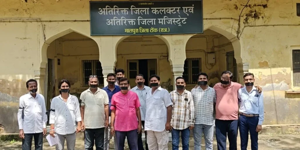 मालपुरा में पत्रकारों का अनूठा मौन प्रदर्शन: काली पट्टी और बंद जुबानों से उठाई पत्रकार सुरक्षा कानून लागू करने की मांग