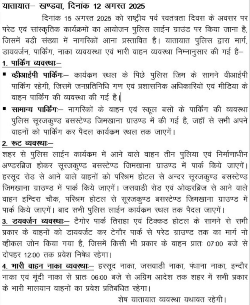 स्वतंत्रता दिवस के अवसर पर यातायात पुलिस ने मार्ग डायवर्जन किया