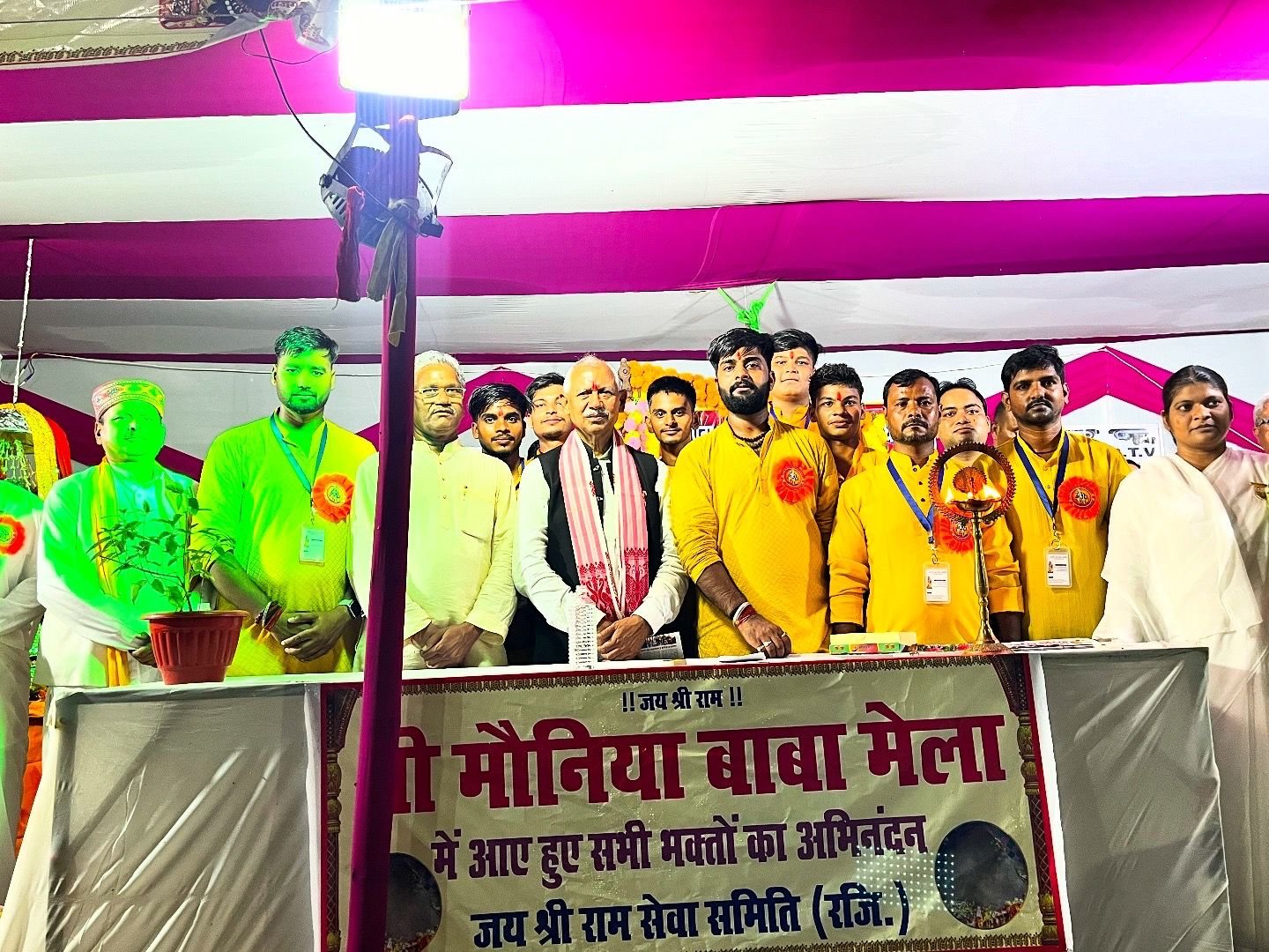 उतर बिहार महराजगंज का सुप्रसिद्ध और ऐतिहासिक मेला श्री मोनिया बाबा का जुलूस 22/8/2025 को था जिसमें इस वर्ष भी जय श्री राम सेवा समिति (रजि.) अपना मेला नियंत्रण कक्ष, मेडिकल कैंप, पानी प्याऊ , खिचड़ा भंडारा सह आखाड़े के कलाकारों को सम्मानित, कलाकारों और करतब दिखाने वाले को पुरस्कार और मैडल और अखाड़ा के सभी संचालक महोदयो को अंग वस्त्र और प्रस्तुति पत्र से सम्मानित करने के लिए लगाया गया जिस मंच का उद्घाटन माननीय सांसद श्री जनार्दन सिंह सिग्रीवाल जी, नगर पंचायत अध्यक्षा श्री मति शारदा देवी, पूर्व विधायक श्री हेमनरायण जी डॉ मिथलेश जी, श्री मति सुप्रिया जैसवाल और प्रजापति बाह्यकुमारी ईश्वरीय विश्व विद्यालय दीदी जी के द्वारा दीप प्रज्वलित किया गया सासंद श्री जनादर्धन सिंह सिग्रीवाल जी द्वारा जय श्री राम सेवा समिति रजि को इस तरह के व्यवस्था और कार्य के लिए मंच से बहुत बहुत धन्यवाद और सम्बोधन किया गया