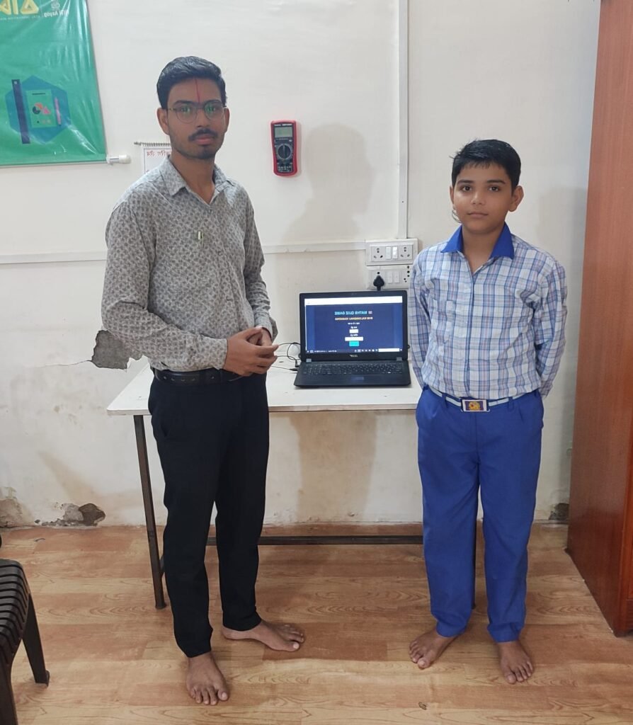 विद्यालय में अटल टिंकरिंग लैब की टीम SVM Innovaters के छात्र शुभ धनवरिया और समर मुजमेर ने मैथ्स क्विज गेम का निर्माण किया जिसमें छात्र गणित के चैप्टर वाइस सवाल हल कर सकते है।