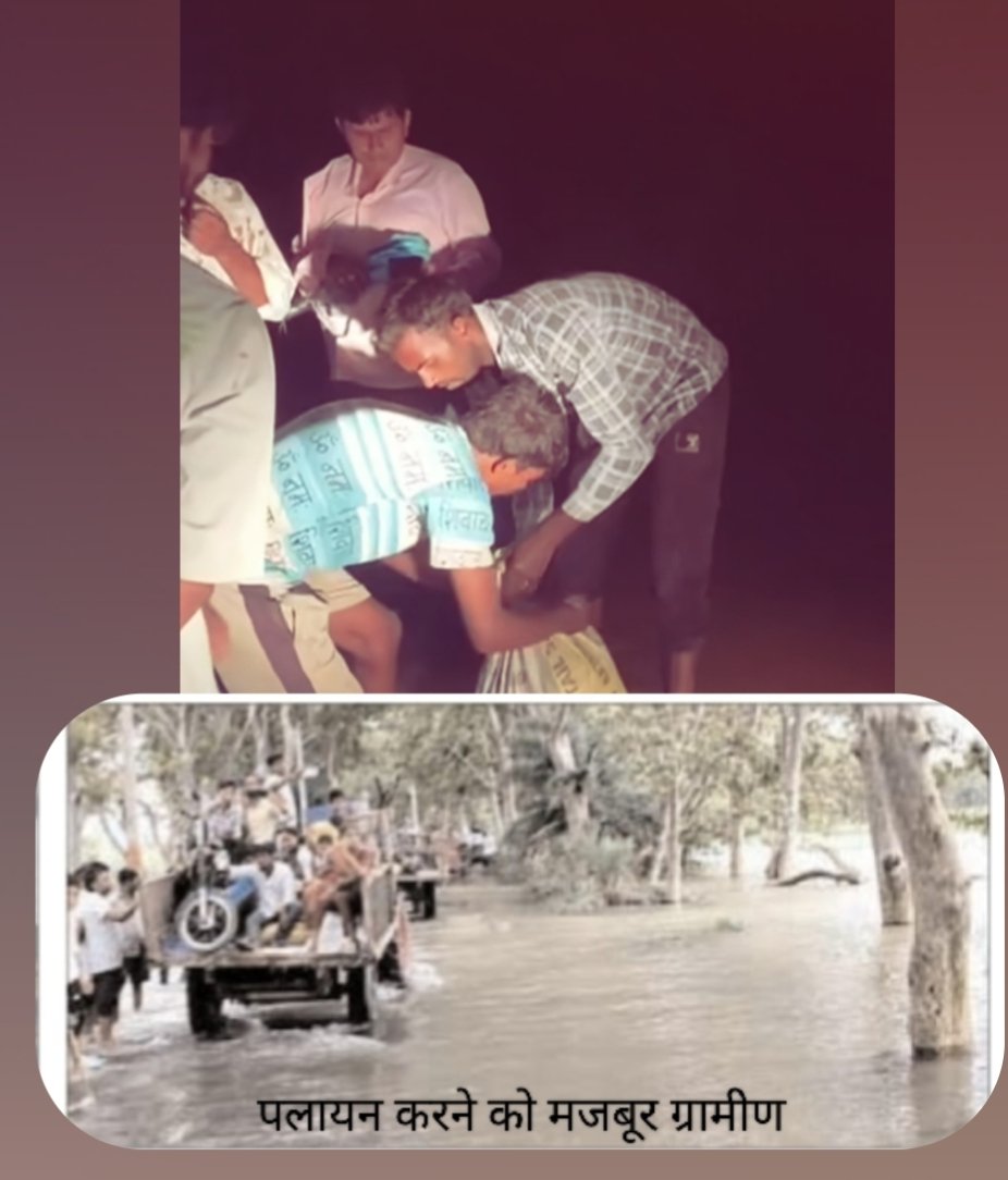 बचाव की गुहार लगा रहे है। लेकिन प्रशासन ग्रामीणों की कोई खबर नही ले रहा। गांव में चारों ओर बाड़ का पानी फैला हुआ है, सड़कें डूब चुकी हैं। ग्रामीण पैदल और ट्रॉली के पानी से बाहर निकलने का प्रयास कर रहे हैं।