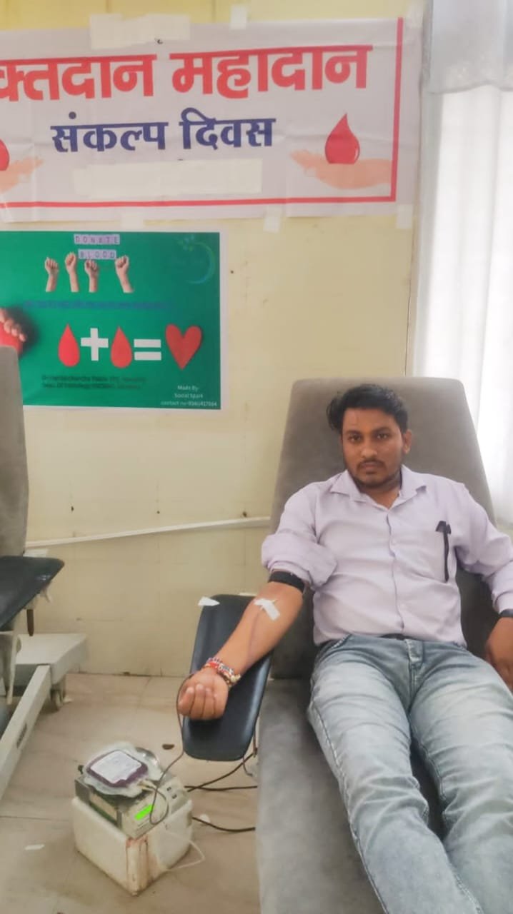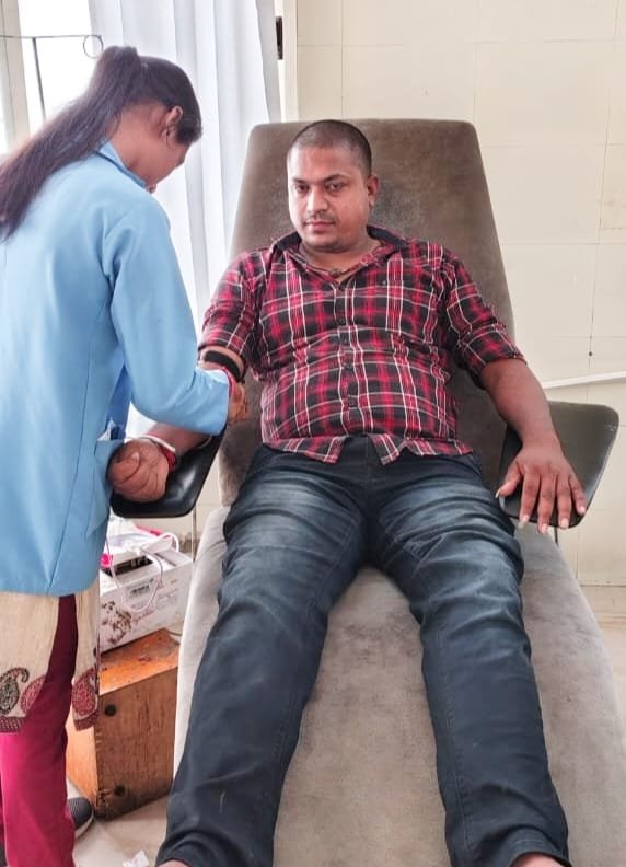 सिविल सर्जन डॉ. अनिरुद्ध कौशल ने बताया कि बुधवार को जिला चिकित्सालय में कन्या महाविद्यालय के सहयोग से रक्तदान शिविर का आयोजन किया गया। इस शिविर में रक्त दानदाताओं द्वारा कुल 15 यूनिट रक्तदान किया गया। उन्होेंने बताया कि रक्तदान शिविर लगाने का उद्देश्य लोगों को रक्तदान के लिए जागरूक व प्रेरित करना है, ताकि मरीजों को उपचार के दौरान जरूरत पड़ने पर समय पर रक्त उपलब्ध हो सके। डॉ. कौशल ने बताया कि अस्पताल में आने वाले थैलेसीमिया एवं सिकल सेल एनीमिया जैसी बीमारियों केे मरीजों को बार-बार रक्त चढ़ाना पड़ता है। साथ ही कुपोषित गर्भवती महिलाओं को भी प्रसव के समय रक्त चढ़ाना पड़ता है।