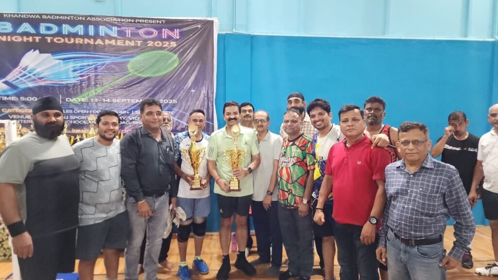 खंडवा, 14 सितम्बर 2025 जिला बैडमिंटन एसोसिएशन के तत्वाधान में विद्याकुंज स्कूल के खेल कुंज एकेडमी इंदौर रोड खंडवा में रात्रिकालीन एक दिवसीय बैडमिंटन टूर्नामेंट का आयोजन किया गया। जिसमें खंडवा, बुरहानपुर,होशंगाबाद,सनावद,अमरावती,हरदा,इटारसी,खरगोन,धारणी,सहित अन्य जगह के लगभग 80 खिलाड़ियों ने भाग लिया। टूर्नामेंट शाम 7 बजे शुरू होकर सुबह 6 बजे तक चला।प्रतियोगिता में 50+,40+,ओपन सिंगल,ओपन डबल्स इवेंट्स हुए।सभी खिलाड़ियों ने उत्साह पूर्वक भाग लिया।