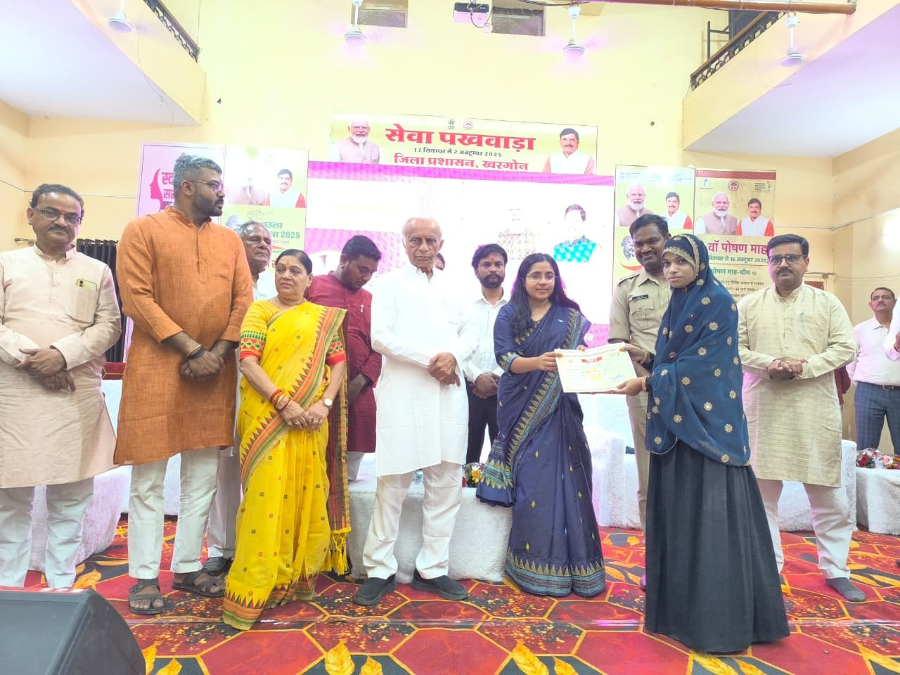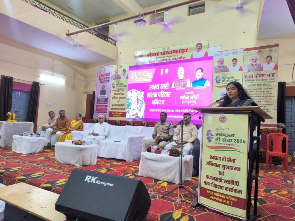 खरगोन 17 सितंबर 2025। प्रधानमंत्री श्री नरेंद्र मोदी द्वारा 17 सितंबर को धार जिले के भैंसोला में पीएम मित्र पार्क का शिलान्यास किया गया है। इस दौरान ’स्वस्थ नारी, सशक्त परिवार’ अभियान का शुभारंभ किया और सुमन सखी चैटबॉट का लोकार्पण भी किया। खरगोन में जिला स्तरीय कार्यक्रम पीजी कॉलेज में आयोजित हुआ। कार्यक्रम में पुलिस अधीक्षक डॉ. रविन्द्र वर्मा, जिला पंचायत के मुख्य कार्यपालन अधिकारी श्री आकाश सिंह, एसडीएम श्री वीरेन्द्र कुमार कटारे, सीएमएचओ डॉ. एमएस सिसोदिया, जिला कार्यक्रम अधिकारी महिला एवं बाल विकास श्री संजय भारद्वाज, स्वनिधि योजना प्रभारी श्री उमेश जोशी, कार्यक्रम संयोजक श्री नरेंद्र (अतिशेय) जोशी, जिला पंचायत उपाध्यक्ष श्री बापूसिंह परिहार सहित अन्य उपस्थित रहे।