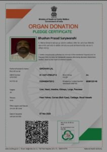 भूषण प्रसाद सूर्यवंशी ने किया अंगदान एवं शरीर के ऊतक का दान