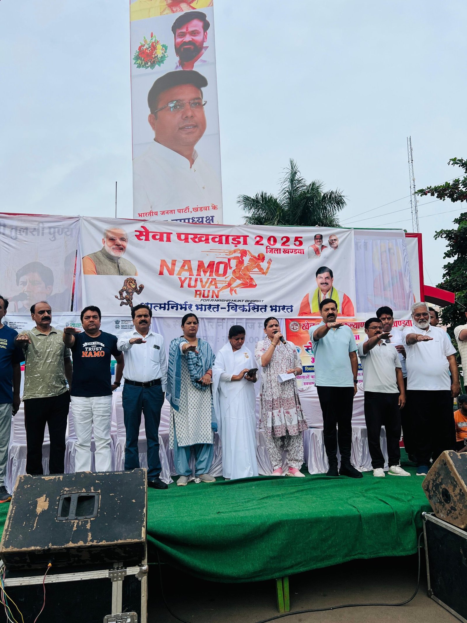 खण्डवा//सेवा पखवाड़े (17 सितम्बर से 2 अक्टूबर) के अंतर्गत रविवार को स्वच्छोत्सव के पांचवें दिन नगर पालिक निगम एवं जिला पंचायत खंडवा द्वारा संयुक्त रूप से स्वच्छता मैराथन का आयोजन किया गया। यह मैराथन प्रातः 7 बजे नगर निगम तिराहे से प्रारंभ होकर घण्टाघर, केवलराम चौक होते हुए पुनः निगम तिराहे पर सम्पन्न हुई।