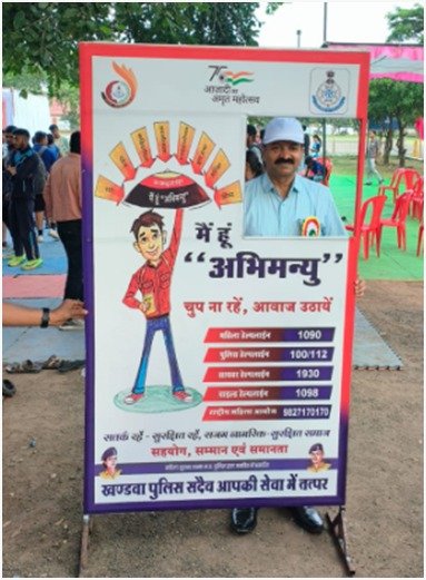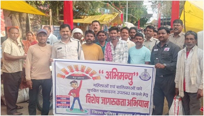 खंडवा, मध्य प्रदेश पुलिस द्वारा प्रत्येक जिले मे महिलाओं एवं बालिकाओं के विरुद्ध हो रहे अपराधों एवं घरेलू हिंसा की रोकथाम तथा सुरक्षित वातावरण उपलब्ध कराने के उद्देश्य से विशेषकर पुरुषों को जागरूक करने हेतु विशेष जागरूकता अभियान मैं हूँ अभिमन्यु कार्यक्रम दिनाक 23.09 2025 से 02.10.2025 तक चलाया जा रहा है।