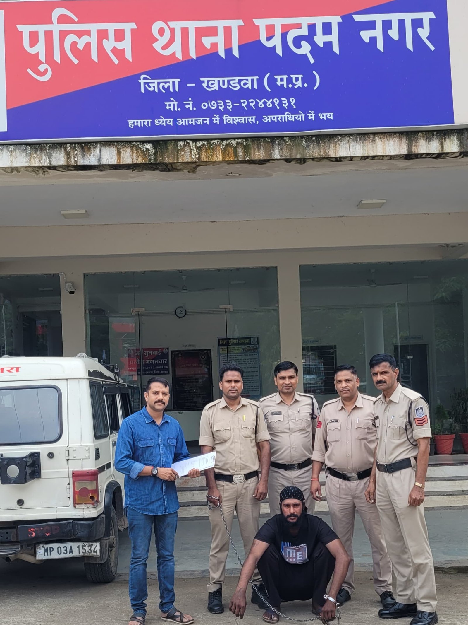 प्रकरण में घटना दिनाँक से फरार आरोपी मुड्डा सिंह की तलाश लगातार पदमनगर पुलिस द्वारा की जा रही थी उक्त फरार आरोपी मुड्डा सिह पर पुलिस अधीक्षक द्वारा 10,000/- रुपये के इनाम की उदघोषणा की गई थी। दिनाँक 28.09.25 को मुखबिर द्वारा सूचना प्राप्त हुई कि फरार आरोपी मुड्डा सिह अपने निवास स्थान ग्राम सिग्नूर में अपने घर पर है। जो पुलिस अधीक्षक खंडवा श्री मनोज कुमार राय के निर्देशन एवं अतिरिक्त पुलिस अधीक्षक (शहर) श्री महेन्द्र तारनेकर, अतिरिक्त पुलिस अधीक्षक (ग्रामीण) खण्डवा श्री राजेश रघुवंशी, एवं सीएसपी खण्डवा श्री अभिनव कुमार बारंगे के मार्गदर्शन में आरोपी कि शीघ्र गिरफ्तारी हेतु टीम गठित कर ग्राम सिग्नूर आरोपी के घर पहुंचे जहाँ आरोपी मुड्डा सिहं अपने घर पर हाजिर मिला जिसे पुलिस अभीरक्षा में लेकर थाना वापस आए जिससे घटना के संबंध में पूछताछ करते अपना जुर्म स्वीकार किया एवं पिस्टल बनाने के सामान पिस्टल एवं देशी कट्टे के संबंध में पूछने पर उसकी निशादेही पर भारी मात्रा में 09 देशी कट्टे एवं 01 देशी पिस्टल व पिस्टल बनाने का सामान जप्त किया गया है। आरोपी मुड्डा सिह की तलाश दीगर राज्यो एवं इन्दौर, खरगोन की पुलिस द्वारा की जा रही थी। आरोपी को धारा धारा 25 (1-बी) (ए) 25(1)(A) आर्म्स एक्ट एवं संगठित अपराध की धारा 111 BNS के तहत दिनांक 29.09.25 को गिरफ्तार किया गया।