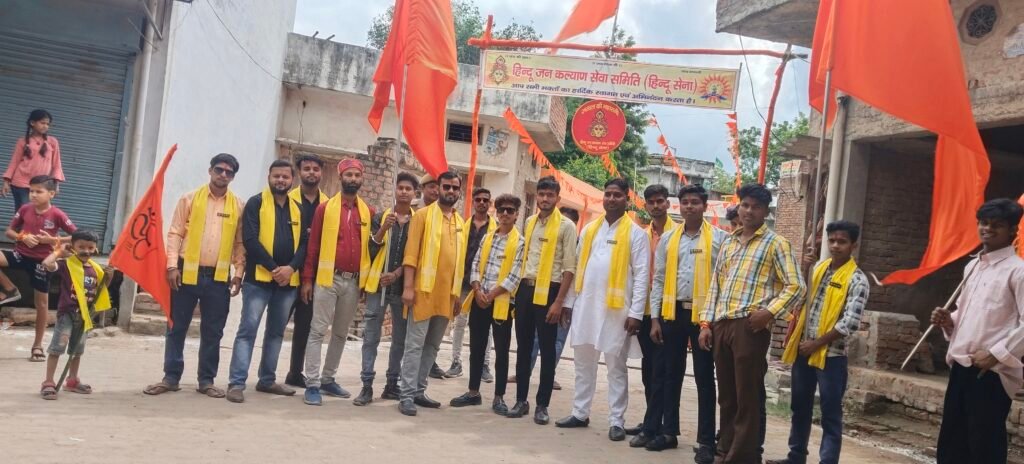 विसर्जन जुलूस के दौरान मां दुर्गा को विदाई देने के लिए हिन्दू सेना के पदाधिकारी ने जगह-जगह श्रद्धालुओ का ध्यान रखते हुए शोभायात्रा में चार चांद लगा दिया श्रद्धालुओं ने