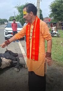 बदायूं के ग्राम मरौरी में सड़क दर्घटना एक गोवंश की मृत्यु मौके पर पहुंचे राहुल त्रिवेदी