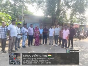 सूरजपुर/08 अक्टूबर 2025/ कलेक्टर श्री एस. जयवर्धन ने आज नगर पालिका अध्यक्ष श्रीमती कुसुमलता रजवाड़े, उपाध्यक्ष तथा पार्षदगण के साथ नगर के वार्ड क्रमांक 3 एवं 4 का निरीक्षण किया। भ्रमण के दौरान उन्होंने क्षेत्र की साफ-सफाई व्यवस्था का जायजा लेते हुए आवश्यक दिशा-निर्देश दिए।