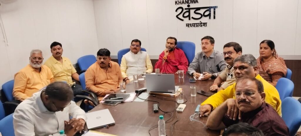 खंडवा// श्री दादाजी धूनी वाले मंदिर निर्माण समिति की बैठक गुरुवार को कलेक्ट्रेट में संपन्न हुई। बैठक में सांसद श्री ज्ञानेश्वर पाटिल, श्री उत्तम स्वामी जी, महापौर श्रीमती अमृता अमर यादव और कलेक्टर श्री ऋषव गुप्ता उपस्थित थे ।