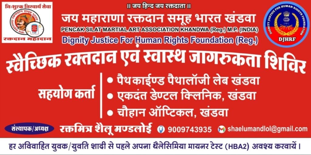 जय महाराणा रक्तदान समूह भारत खण्डवा का रक्तदान व स्वास्थ्य जागरूकता