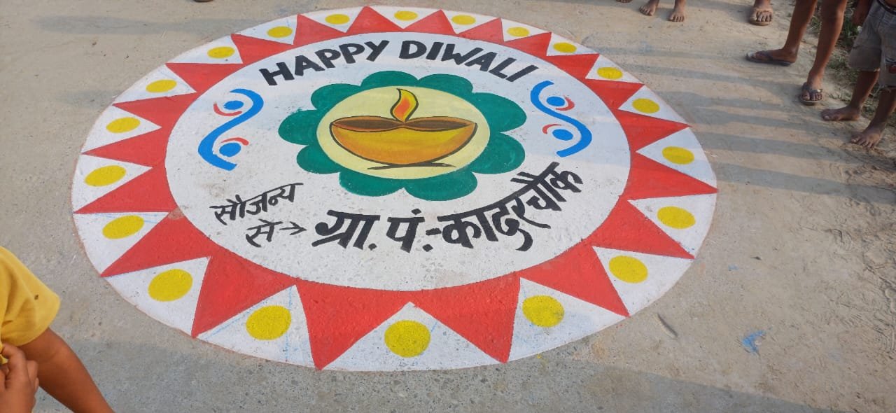आज ग्राम पंचायत कादरचौक में दीपावली के अबसर पर गाँव के तिराहा एवं चौराहों पर दिवाली की रंगोली बनाई गई ग्राम प्रधान दिनेश कुमार उर्फ धारा भैया