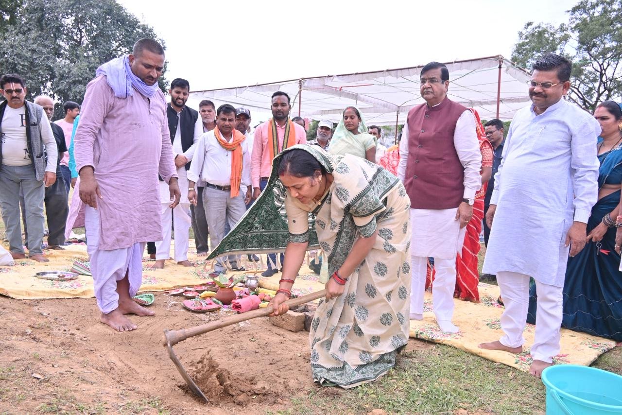 भूमि पूजन कार्यक्रम में शामिल हुई मंत्री श्रीमती राजवाड़े
