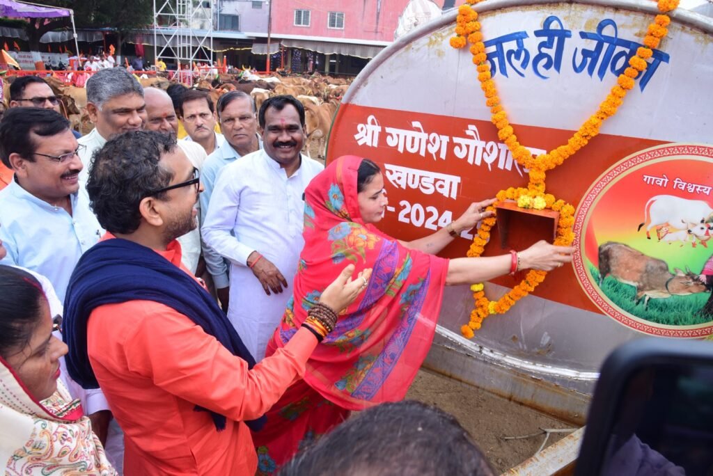 पानी की समस्या दूर करने के लिए 15 गांव के साथ खंडवा की गौशाला में विधायक कंचन तंवे ने प्रदान किया इंजन युक्त टैंकर।
