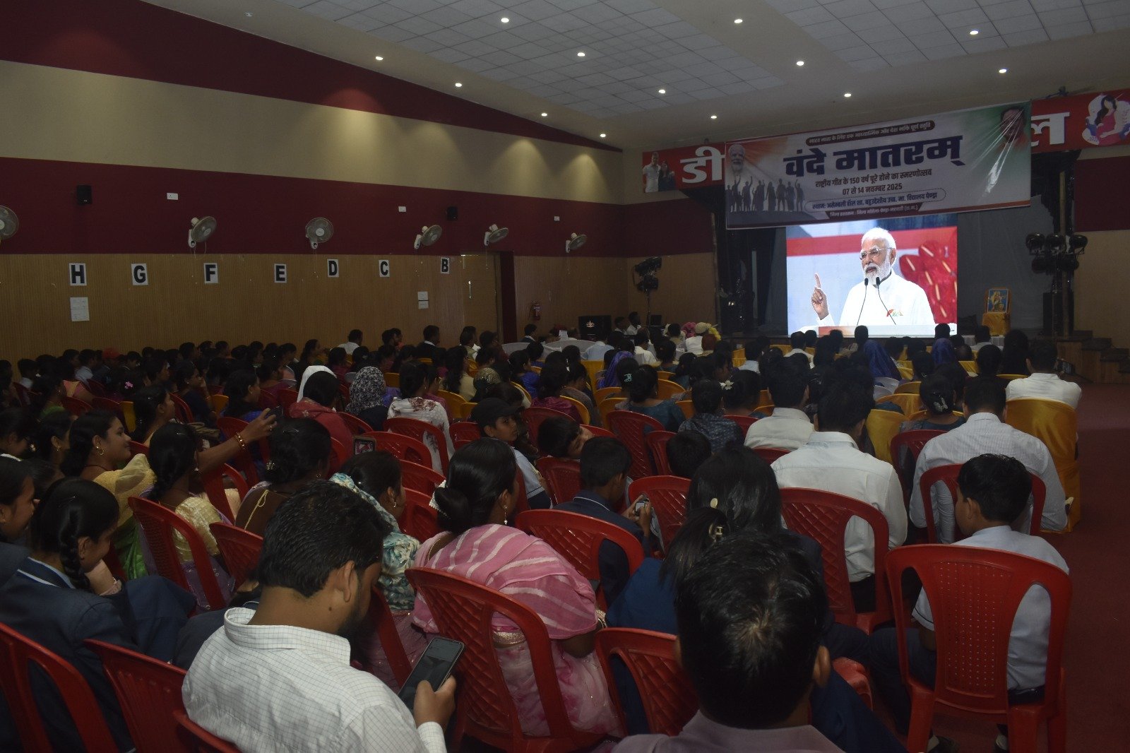 मां भारती को समर्पित देशभक्ति और आध्यात्मिकता के भाव से भरा गीत वन्दे मातरम् राष्ट्रीय गीत के 150 वर्ष पूर्ण होने के अवसर पर जिला प्रशासन द्वारा मल्टीपरपस स्कूल पेण्ड्रा के असेम्बली हॉल में स्मरणोत्सव समारोह का आयोजन किया गया। इस उत्सव में कलेक्टर श्रीमती लीना कमलेश मंडावी सहित अधिकारियों, जनप्रतिनिधियों, गणमान्य नागरिकों, छात्र-छात्राओं और नगरवासियों ने वन्दे मातरम् गीत का सामूहिक गायन किया। इसके साथ ही ग्राम पंचायत से जिला स्तर तक शैक्षणिक संस्थानों, शासकीय कार्यालयों एवं अन्य संस्थाओं में भी वन्दे मातरम् राष्ट्रीय गीत का सामूहिक गायन किया गया। जिला स्तरीय कार्यक्रम में उपस्थित दर्शकों को प्रधानमंत्री श्री नरेंद्र मोदी जी के लाइव प्रसारण का प्रेरक उद्बोधन ऊर्जा से भर दिया। श्री मोदी ने वन्दे मातरम् के 150 वर्ष पूरे होने के अवसर पर स्मारक सिक्का और स्मारक डाक टिकट का विमोचन किया। उन्होंने रिमोट का बटन दबाकर वन्दे मातरम् वेबसाइट का शुभारंभ भी किया।