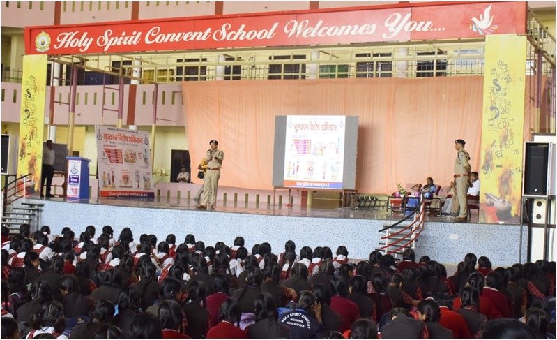 दिनांक 07.11.2025 को पुलिस मुख्यालय द्वारा चलाए जा रहे दिनांक 01.11.2025 से 30.11.2025 तक नाबालिग बालिकाओं पर घटित अपराध की रोकथाम के लिए मुस्कान जन जागरूकता अभियान के अंतर्गत जिले के पुलिस अधीक्षक श्री मनोज राय द्वारा होली स्प्रिट स्कूल के कक्षा 06 से 12वीं तक के बालक एवं बालिकाओं के साथ जनसंवाद किया, बढ़ते अपराध से बचाव और सजग रहने की जानकारी दी। गुड टच बेड टच, महिला अपराध, नशीले पदार्थों सेवन साइबर अपराध जिसमें अश्लील चित्रण वीडियो फोटो के द्वारा ब्लैकमेलिंग एवं उनसे होने वाले दुष्परिणाम, बाल विवाह, बाल अपराध, बाल/बंधवा मजदूर, 1090 महिला अपराध, 1930 साइबर अपराध, 1098 चाईल्ड हेल्प लाईन, डायल 112, दहेज प्रताड़ना पास्को एक्ट, भारतीय न्याय संहिता के अंतर्गत बालक बालिकाओं के क्रिया कलापों, पुलिस हेल्पलाइन नंबर के बारे में बताया, सोशल मीडिया का उपयोग सावधानी पूर्वक करने के लिए बताया अपराधियों द्वारा आज के समय में लालच, प्रलोभन देकर ले जाने पर घटित होने वाले अपराधों के बारे में बताया। साथ ही महिला थाना प्रभारी निरीक्षक सुलोचना गहलोद द्वारा बच्चों को पुलिस मुख्यालय द्वारा जारी बच्चों की सुरक्षा से संबंधित मूवी, वीडियो क्लिपिंग दिखा कर सावधान रहने की समझाइए दी।