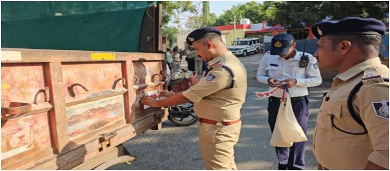 यातायात पुलिस खंडवा द्वारा वाहनों पर रेडियम रिफ्लेक्टर स्टिकर चिपकाकर एवं राहवीर योजना के दिशा निर्देश की बुकलेट जारी कर आमजन को जागरूक करने के लिए किया गया नवाचार