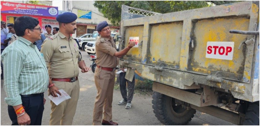 खंडवा पुलिस द्वारा बढ़ती सड़क दुर्घटनाओं को रोकने एवं यातायात सुरक्षा को मजबूत बनाने के उद्देश्य से एक नवाचार अपनाया गया है। पुलिस अधीक्षक खंडवा श्री मनोज कुमार राय के निर्देशन तथा अतिरिक्त पुलिस अधीक्षक (ग्रामीण) श्री राजेश रघुवंशी व अतिरिक्त पुलिस अधीक्षक (शहर) श्री महेन्द्र तारनेकर के मार्गदर्शन में उप पुलिस अधीक्षक यातायात श्री अनिल राय व थाना प्रभारी यातायात निरीक्षक देवेंद्र परिहार के द्वारा अपनी टीम के साथ वाहनों पर विशेष रेडियम रिफ्लेक्टर स्टिकर चिपकाने की मुहिम शुरू की गई है। इस यातायात नवाचार का प्रारम्भ पुलिस कंट्रोल रूम के सामने पुलिस अधीक्षक खंडवा द्वारा स्वयं ट्रेक्टर ट्रॉली में रेडियम रिफ्लेक्टर स्टिकर लगाकर की गई।