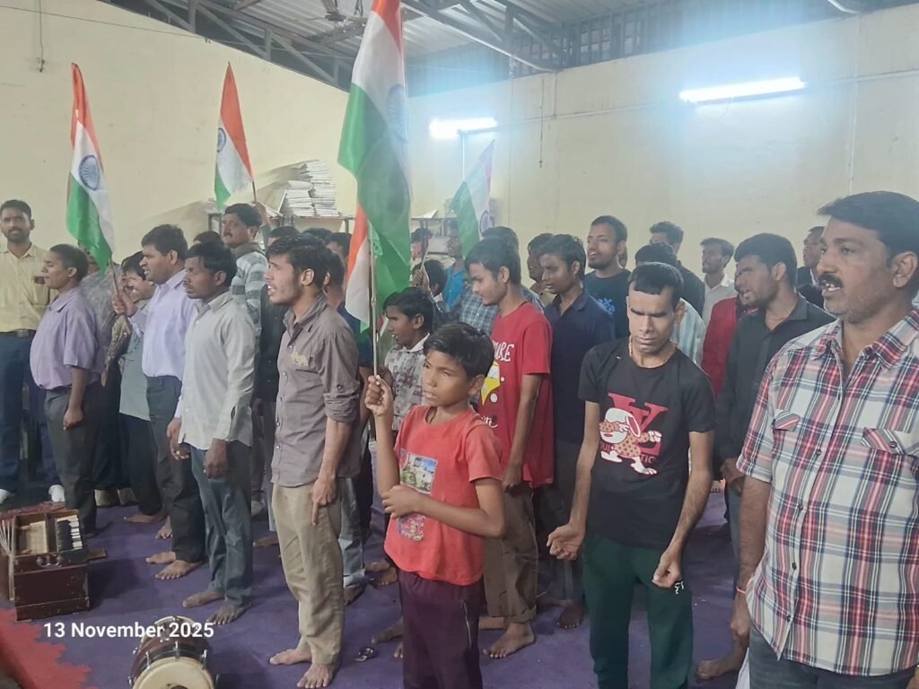 वंदे मातरम की डेढ़ सौ वर्ष पूर्ण होने पर निमाड नेत्रहीन संघ में आयोजित हुआ वंदे मातरम कार्यक्रम।