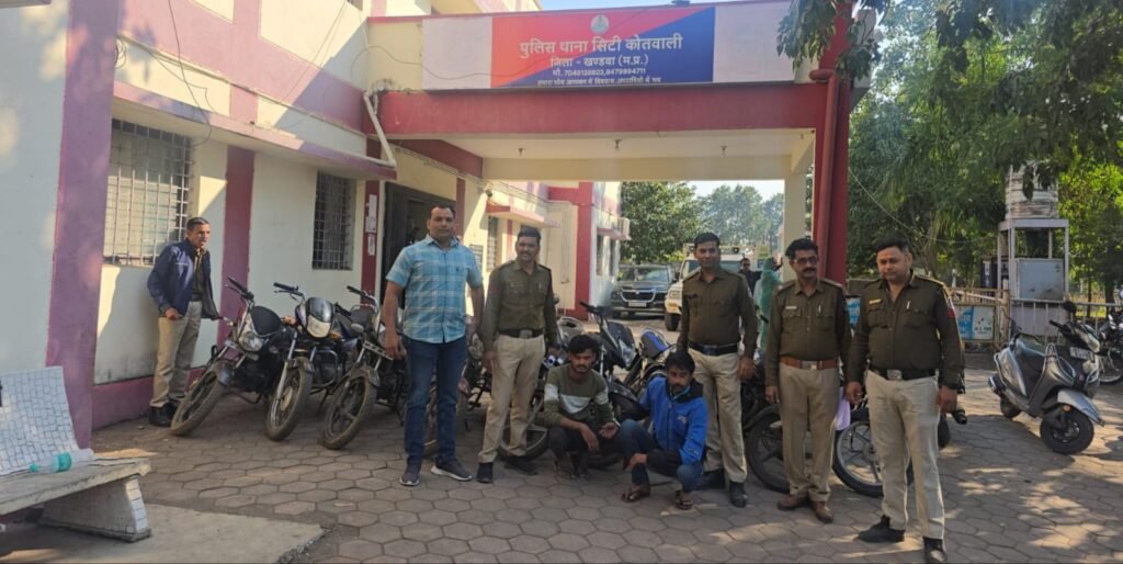 मुखबिर की सूचना पर संदिग्ध व्यक्तियों की तलाश करते बडा कब्रस्तान के पास घेराबंदी कर आरोपियों को पकड़ा गया तथा पूछताछ पर उन्होंने शहर के विभिन्न क्षेत्रों से मोटर साइकिल/वाहन चोरी करना स्वीकार किया। आरोपियों के कब्जे से चोरी की 10 संख्या वाहन बरामद किए गए हैं, जिनकी कुल कीमत लगभग ₹08 लाख रुपये है। गिरफ्तार आरोपीयो को न्यायालय खण्डवा पेश किया गया।